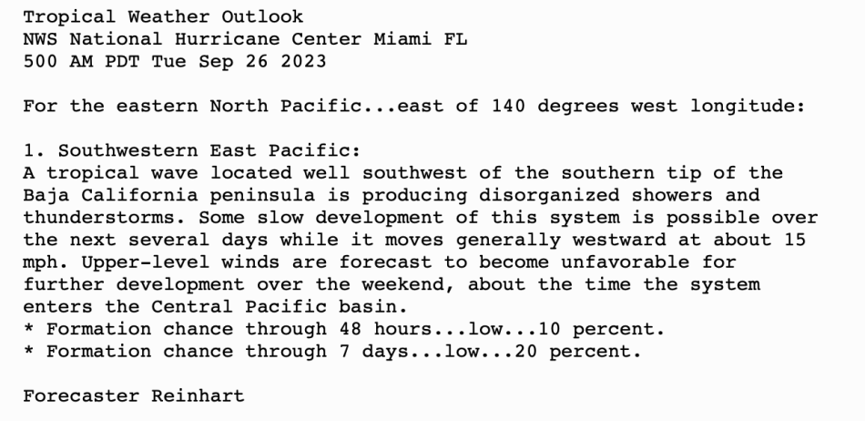 | Tropical Weather Outlook (en Español*) 800 AM EDT Tue 26 Sep 2023 | |