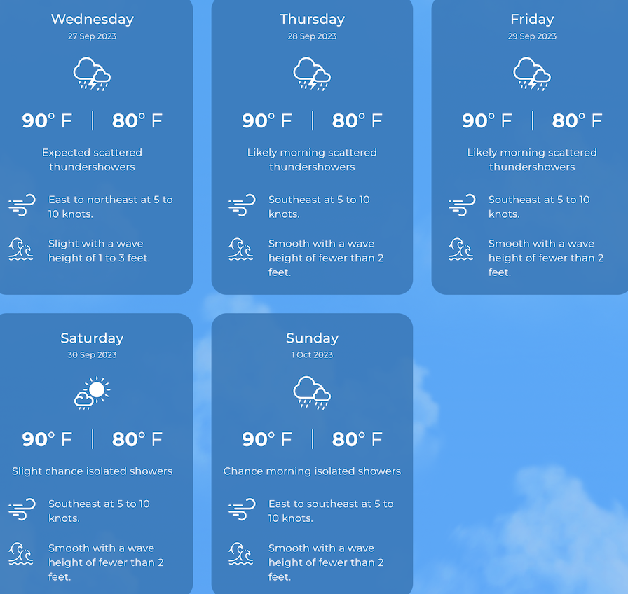 Temperatures: Yesterday – Low 80.1°F, High 90.0°F Today (Expected) – Low 80°F High 88°F