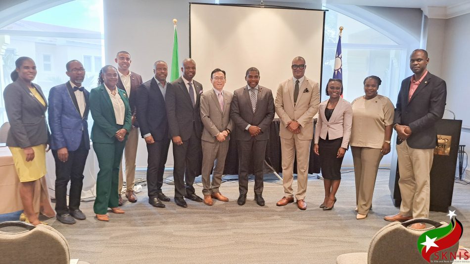 Resident Ambassador of the Republic of China (Taiwan) to Saint Kitts and Nevis, His Excellency Michael Chau-Horng Lin, with Saint Kitts and Nevis Ministers of Government and other senior government officials