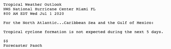 | Tropical Weather Outlook (en Español*) 800 AM EDT Wed Jul 1 2020 |