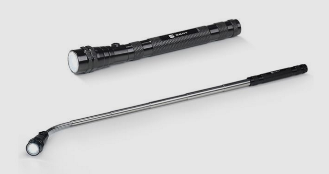 8. Shine a light in the dark. At night, heavy snow can make it even more difficult to see inside and outside the car. This is why the extensible torch can be used both to search for lost objects inside the vehicle (even in the most remote places thanks to its telescopic function) and to illuminate the surroundings if you have to adjust the chains or fix a puncture.