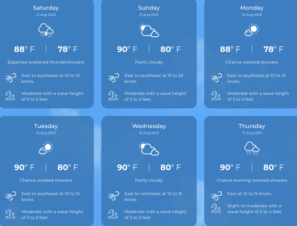 Temperatures: Yesterday – Low 80.1°F, High 90.1°F Today (Expected) – Low 80°F High 90°F