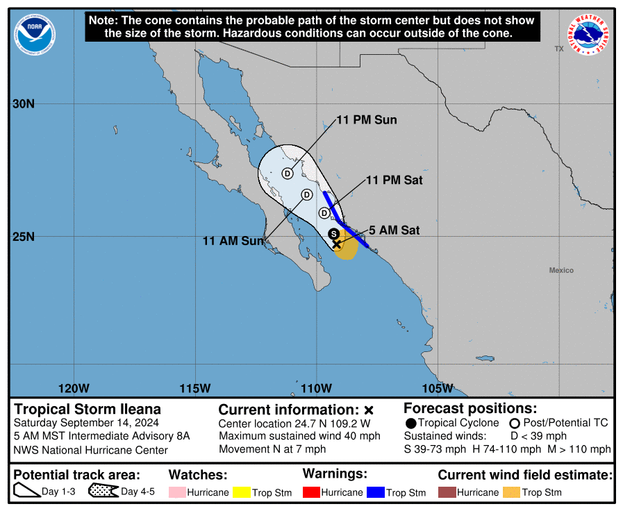 ILEANA CONTINUES NORTHWARD OVER THE SOUTHERN GULF OF CALIFORNIA… …TROPICAL STORM CONDITIONS OCCURRING ALONG PORTIONS OF THE COAST OF MEXICO