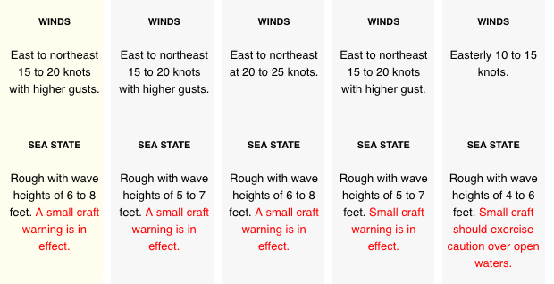 Winds: Today: E 20-30 mph Tonight: ENE 15-25 mph