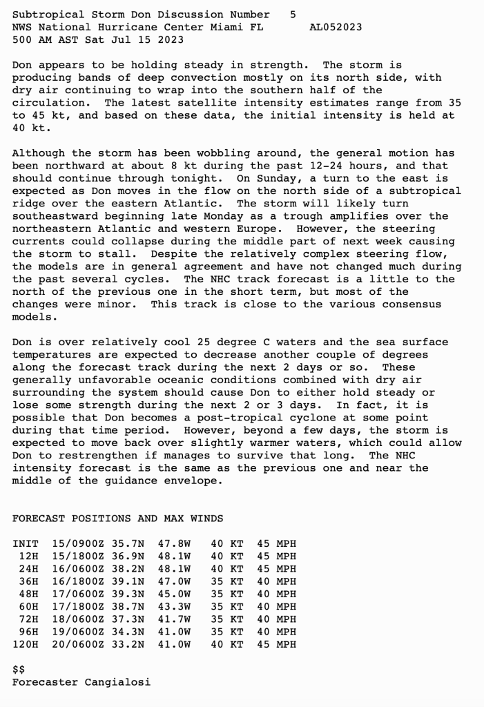 | Tropical Weather Outlook (en Español*) 800 AM EDT Sat 15 Jul 2023 | |