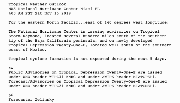 16 Nov 2019 Weather in Cayman & Tropical Report, 1 Dist.