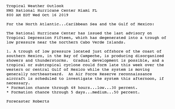 16 Oct 2019 Weather in Cayman & Tropical Report, 1 Dist.