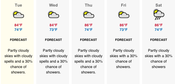 Temperature: Today’s expected temperatures – 77°F to 84°F. Yesterday: H 83.8°F L 73.0°F