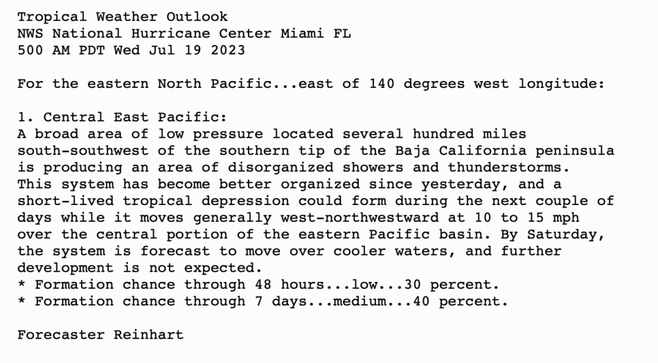 | Tropical Weather Outlook (en Español*) 800 AM EDT Wed 19 Jul 2023 | |