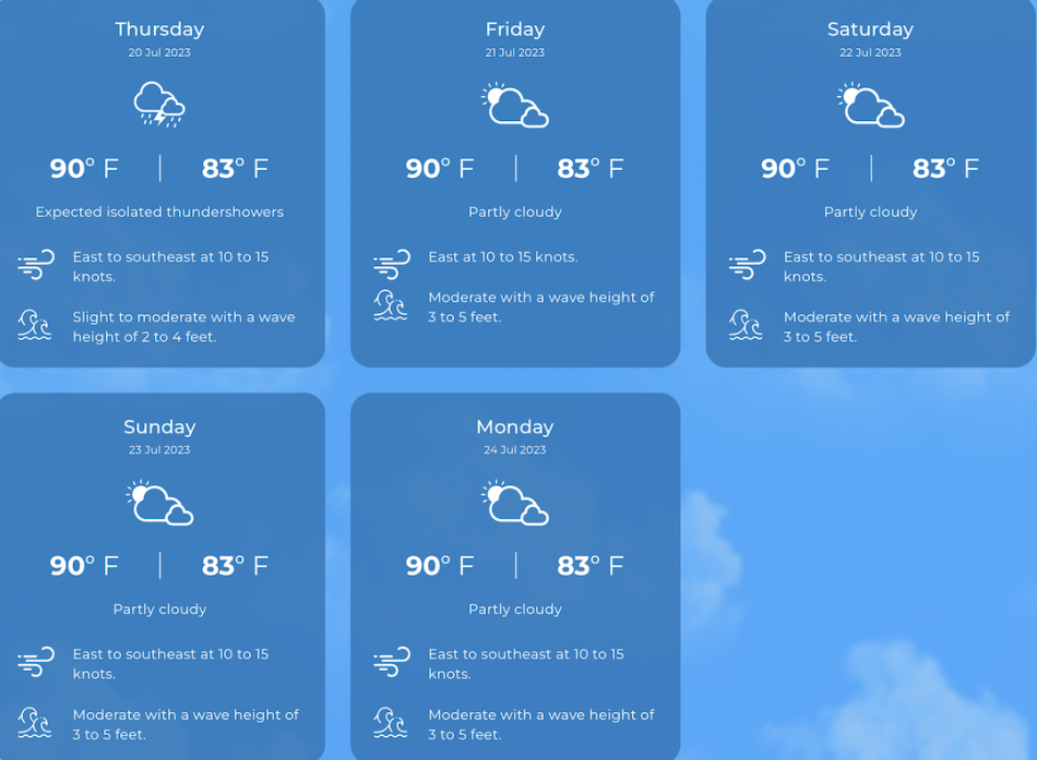 Temperatures: Yesterday – Low 82.4°F, High 90.2°F Today (Expected) – Low 83°F High 90°F
