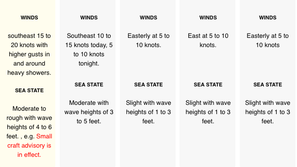 Winds: Today SE 10-20 mph Tonight SE 10-20 mph