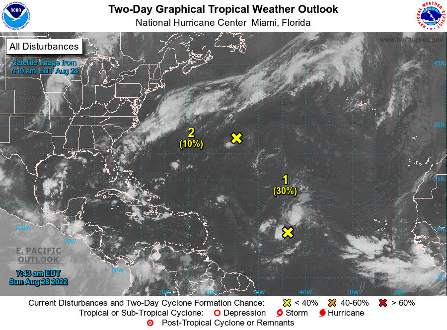 | Tropical Weather Outlook (en Español*) 800 AM EDT Sun Aug 28 2022 1205 UTC unt Aug 28 2022 | |