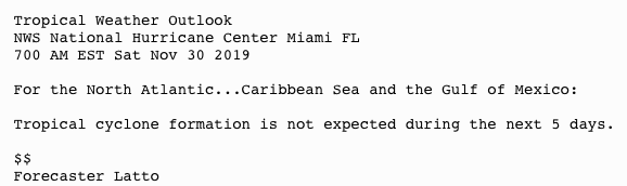 30 Nov Sat 2019 TROPICAL REPORT ATLANTIC Tropical Weather Outlook