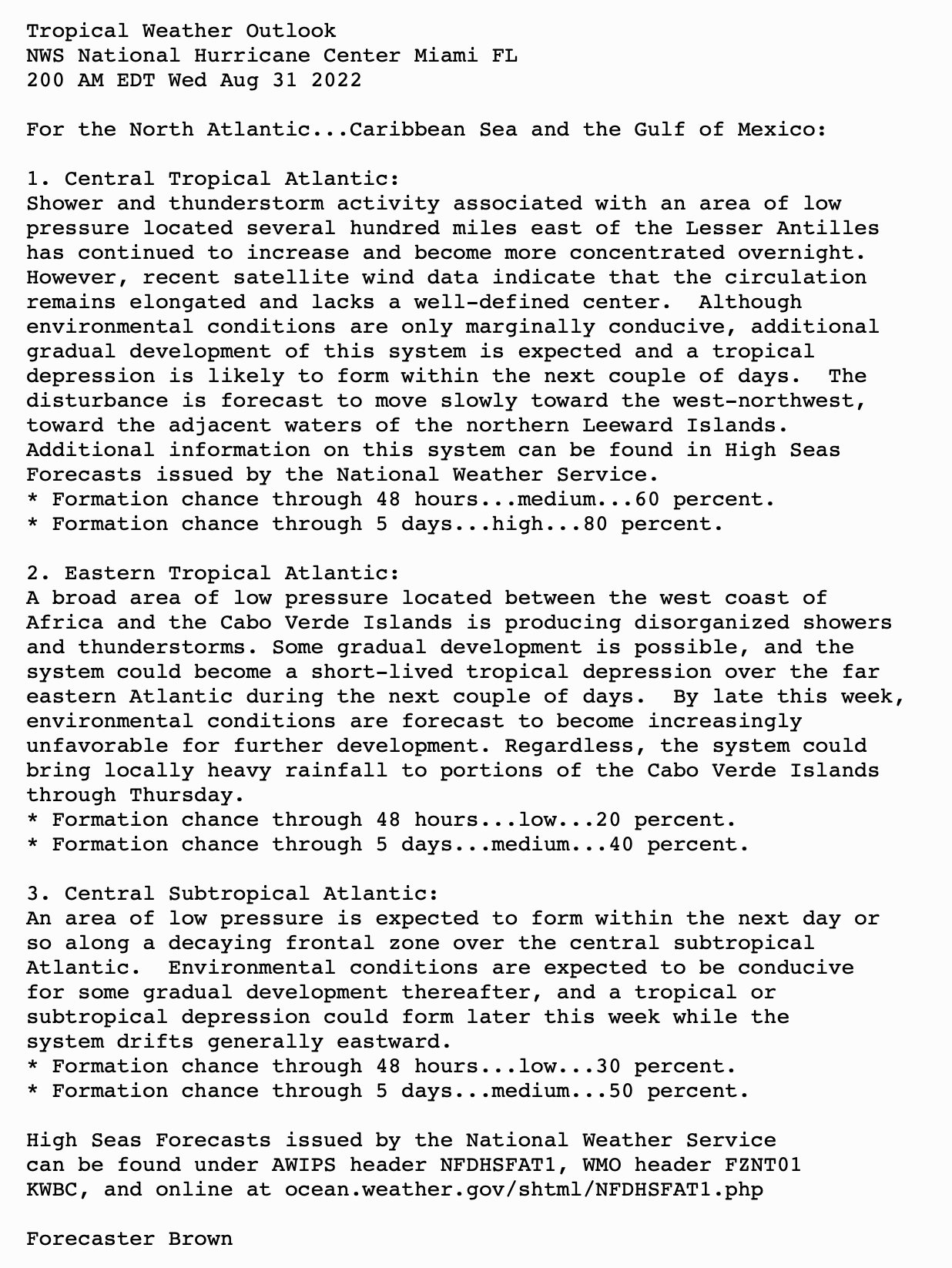 | Tropical Weather Outlook (en Español*) 800 AM EDT Wed Aug 31 2022 1205 UTC Wed Aug 31 2022 | |