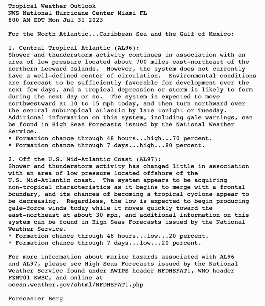 | Tropical Weather Outlook (en Español*) 800 AM EDT Mon 31 Jul 2023 | |