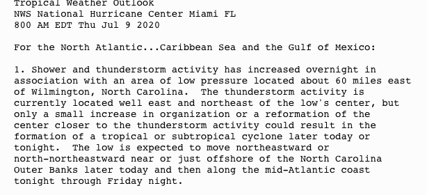 | Tropical Weather Outlook (en Español*) 800 AM EDT Thu Jul 9 2020 |