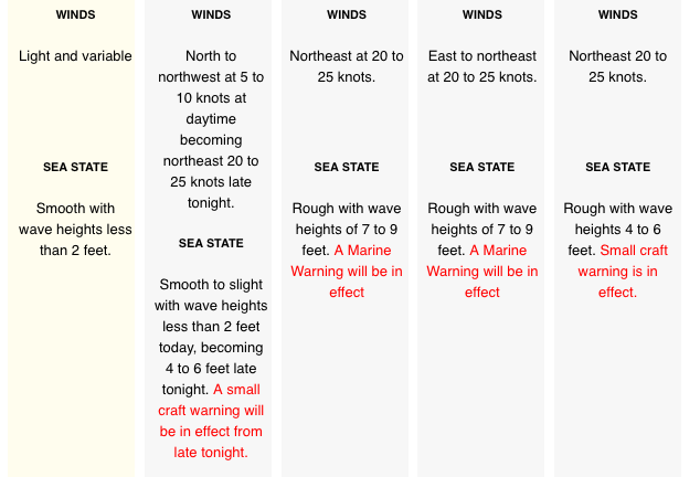 Winds: Today: Light and variable. Tonight: Light and variable