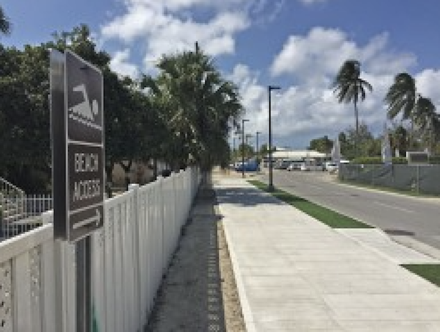 When Dart applied for planning permission for the West Bay Road underpass, the Central Planning Authority approved an application to relocate and consolidate the two existing public accesses impacted by the new underpass, for the creation of a new consolidated 12-foot public right of way to the beach along the southern boundary of the Royal Palms property. Dart also expanded this consolidated right of way with an additional six feet to align with planning requirements and enabling access for emergency services.