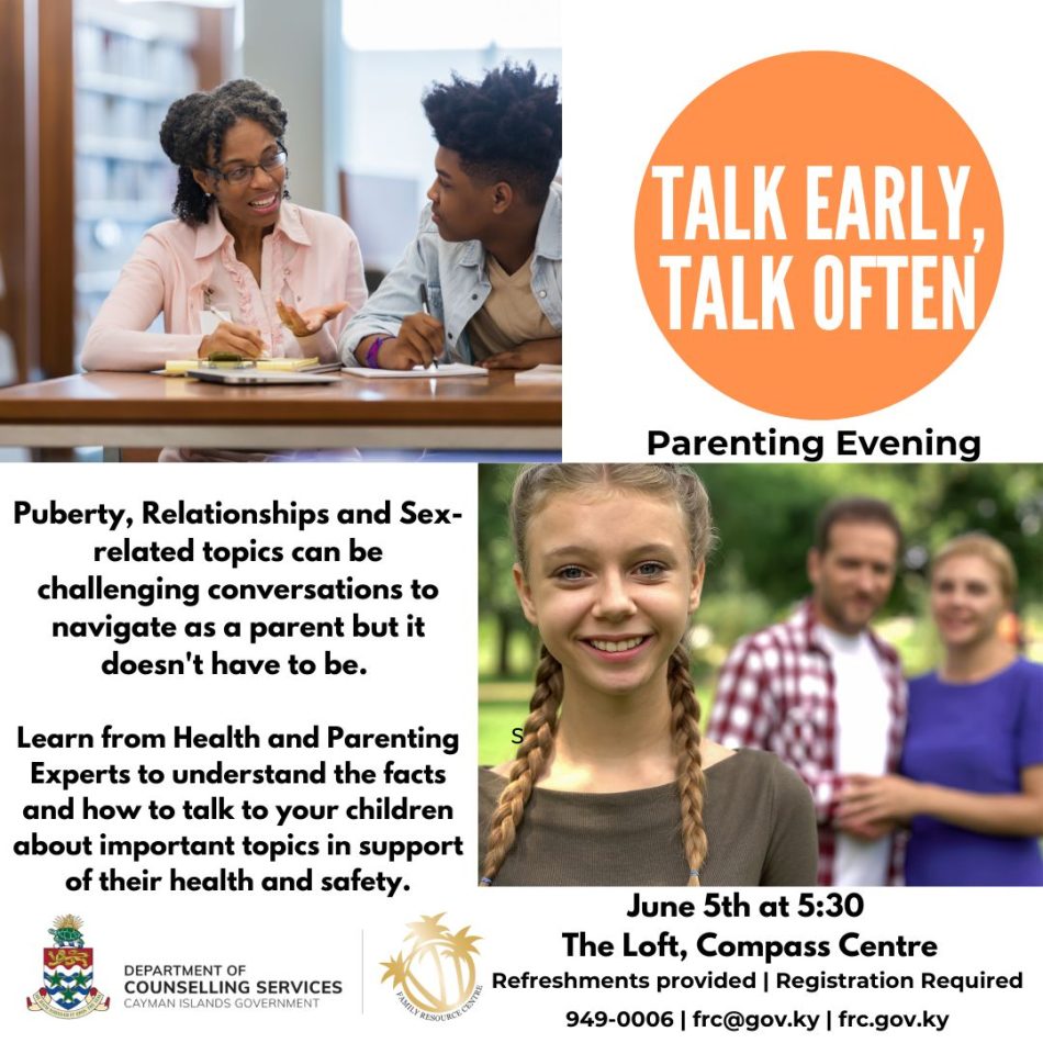 The FRC will also be hosting a “Talk Early, Talk Often” Parent Evening on June 5th at 5:30 at The Loft, Compass Media where experts will discuss topics such as puberty and mental health, child protection, community resources and more in order for parents to feel more knowledgeable about topics related to sex and puberty, in order to keep their children safe with key information. Refreshments will be provided and registration is required: