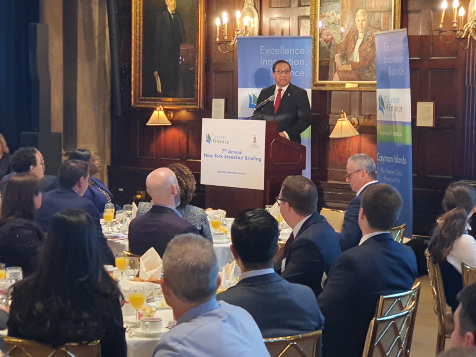 NEW YORK, New York– Premier Hon. Alden McLaughlin on Tuesday delivered opening remarks at the 7th Annual Cayman Finance New York Breakfast Briefing on Tuesday, 21 January. Speaking at the briefing Premier McLaughlin thanked those in attendance for doing business with the Cayman Islands and provided a brief update on the stellar performance of Cayman’s economy, including growth in the financial sector. He highlighted the country’s commitment to supporting the sector and to ensuring that we do what is needed to protect our reputation as a quality international financial services centre.