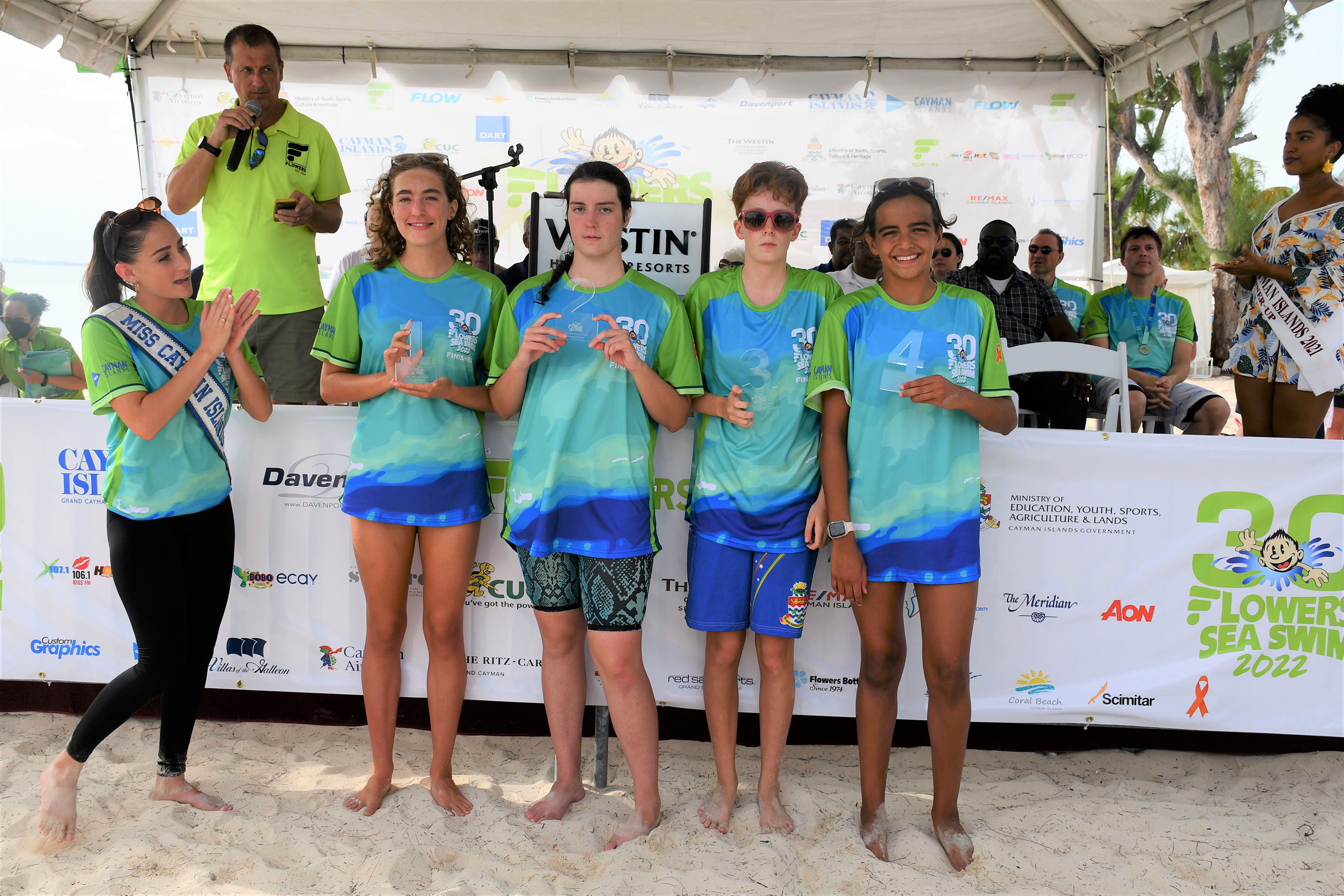 MYSCH Minister, Hon. Bernie Bush made remarks and gave out prizes at Saturday (11 June) afternoon’s 30th Flowers Annual One-Mile Sea Swim. The Ministry is a platinum sponsor of the longest continuously running sporting event, which raised money for the YMCA this year.
