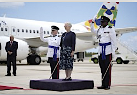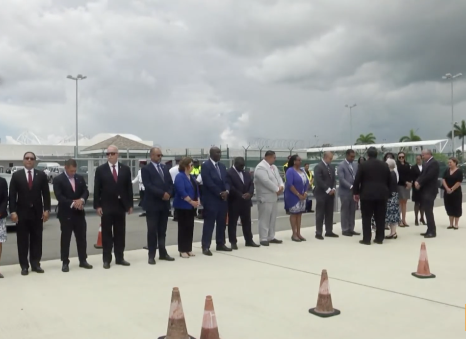 The Governor Designate arrived earlier this morning at the Owen Roberts International Airport, where she was introduced to Deputy Governor Hon. Franz Manderson – who has been Acting Governor since the departure of the former Governor, Martyn Roper, in March 2023. Upon her arrival, the Governor Designate proceeded to the dais, where she received a General Salute from the Guard of Honour as a general greeting and mark of respect.