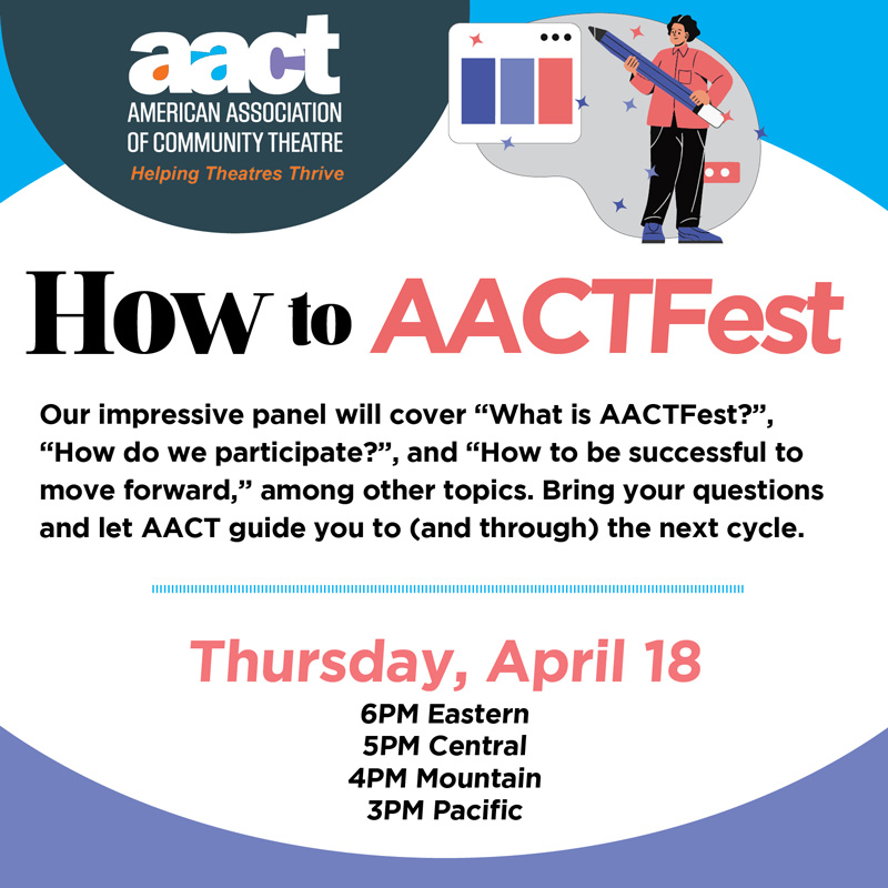 - 5/16: AACT Online Roundtable – How to Organize a Community Theatre Festival