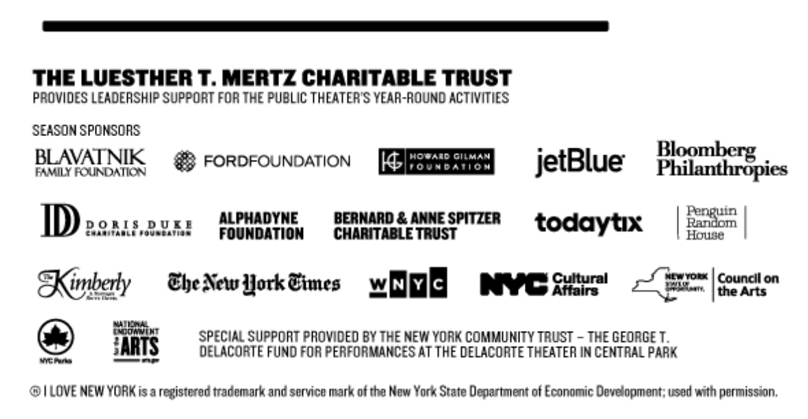 The Public requires proof of complete COVID-19 vaccination by the date of attendance for access to The Delacorte Theater. A booster dose, for those eligible under CDC guidelines, and the use of a face mask are recommended but not required. For more details, visit Safe in the Park.