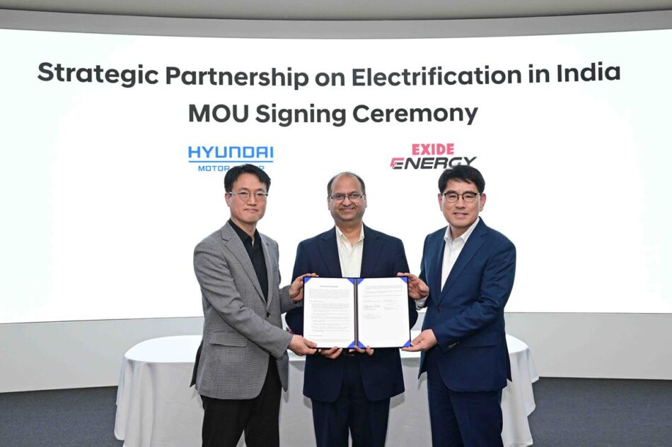 Hyundai Motor Company (Hyundai Motor) and Kia Corporation (Kia) signed a Memorandum of Understanding (MOU) for strategic cooperation with Exide Energy Solutions Ltd. (Exide Energy), a leading Indian battery company, as part of their electric vehicle (EV) expansion plans.