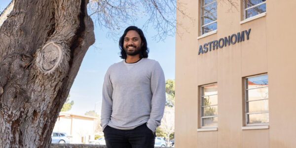 Aman Priyadarshi Kumar, New Mexico State University astronomy Ph.D. student, links brightening regions on the sun to early warnings for solar flares in his paper published today in the Astrophysical Journal Letters. (NMSU photo by Sarah Kimmerly) Aman Priyadarshi Kumar,…
