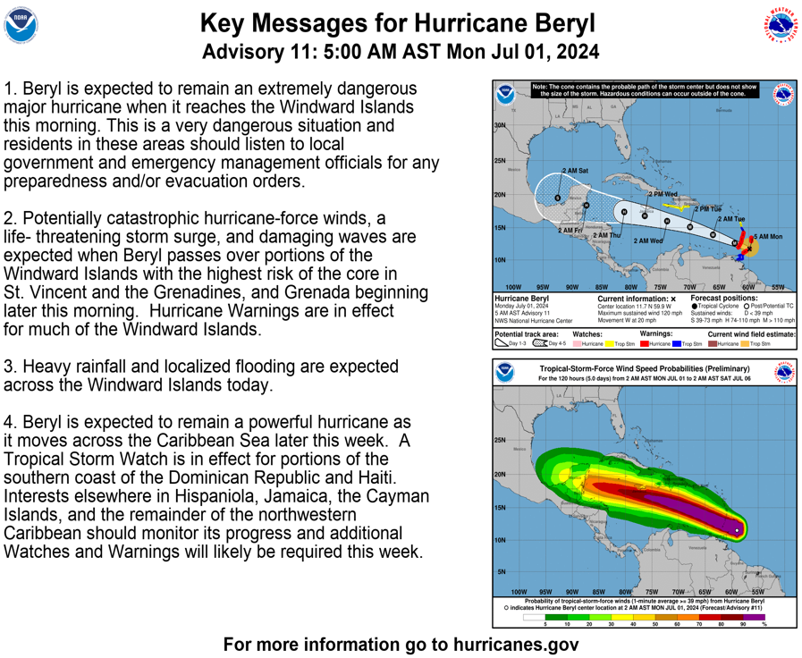EYEWALL OF EXTREMELY DANGEROUS CATEGORY 4 BERYL NEARING THE SOUTHERN WINDWARD ISLANDS… …1000 AM AST POSITION UPDATE