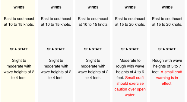 Winds: Today: ESE 10-20 mph Tonight: E 1020 mph