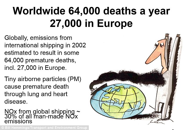 Bill Hemmings, of the Transport and Environment group in based Brussels, told MailOnline: ‘Europe needs to get real about air pollution. Ship air pollution alone causes over 27000 premature deaths a year’