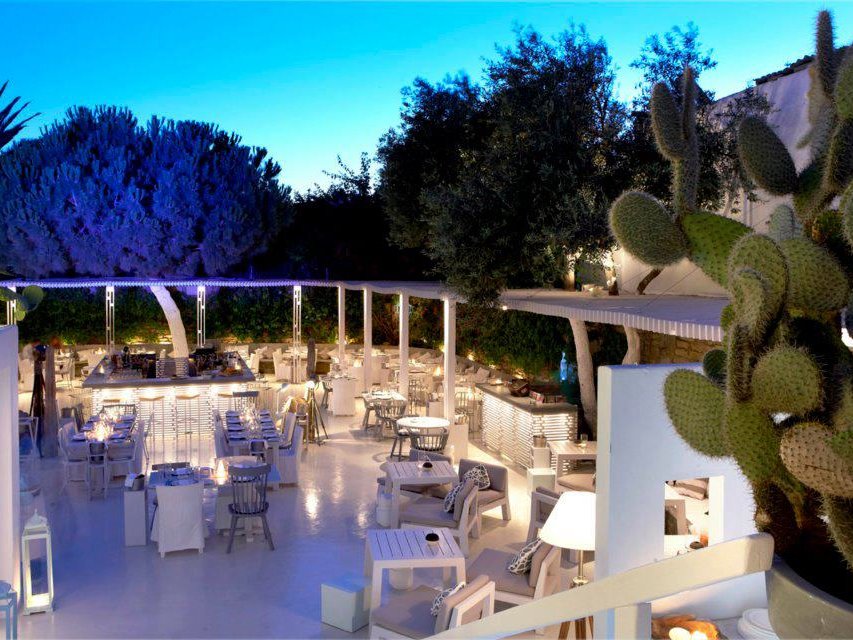 Dine at Interni Mykonos, an open-air dining room off of a secret passageway that transforms into a dance lounge at 2 a.m. ($122,000 for five tables)