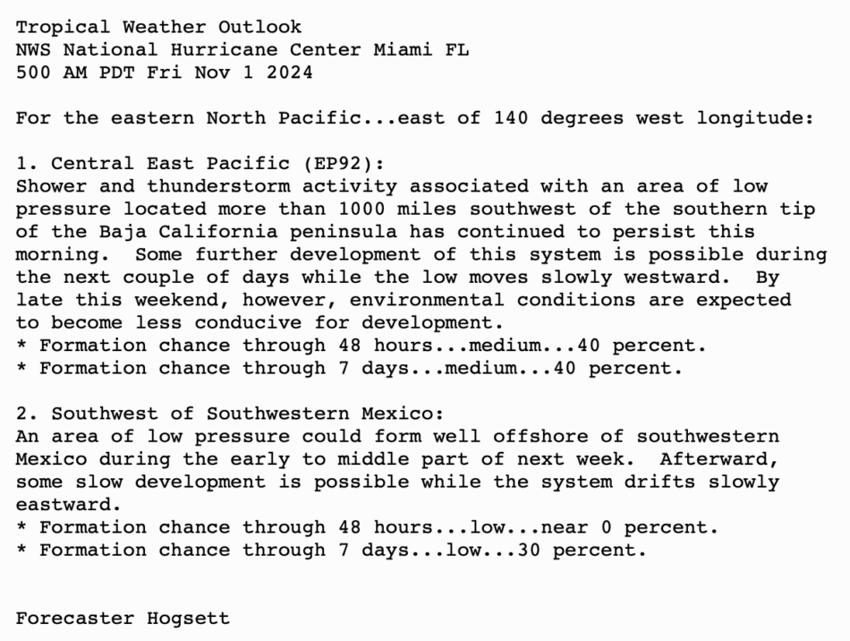 | Tropical Weather Outlook Text | Tropical Weather Discussion |