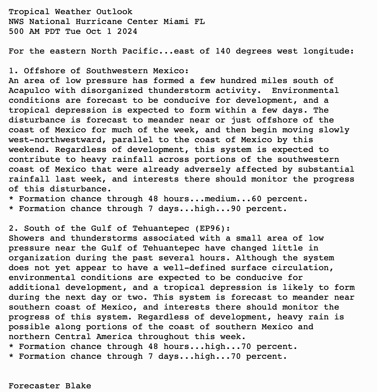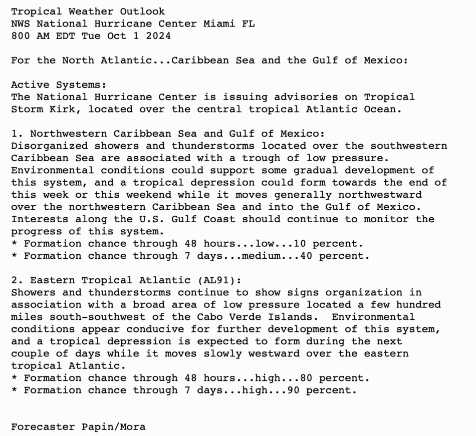 | Tropical Weather Outlook Text | Tropical Weather Discussion |
