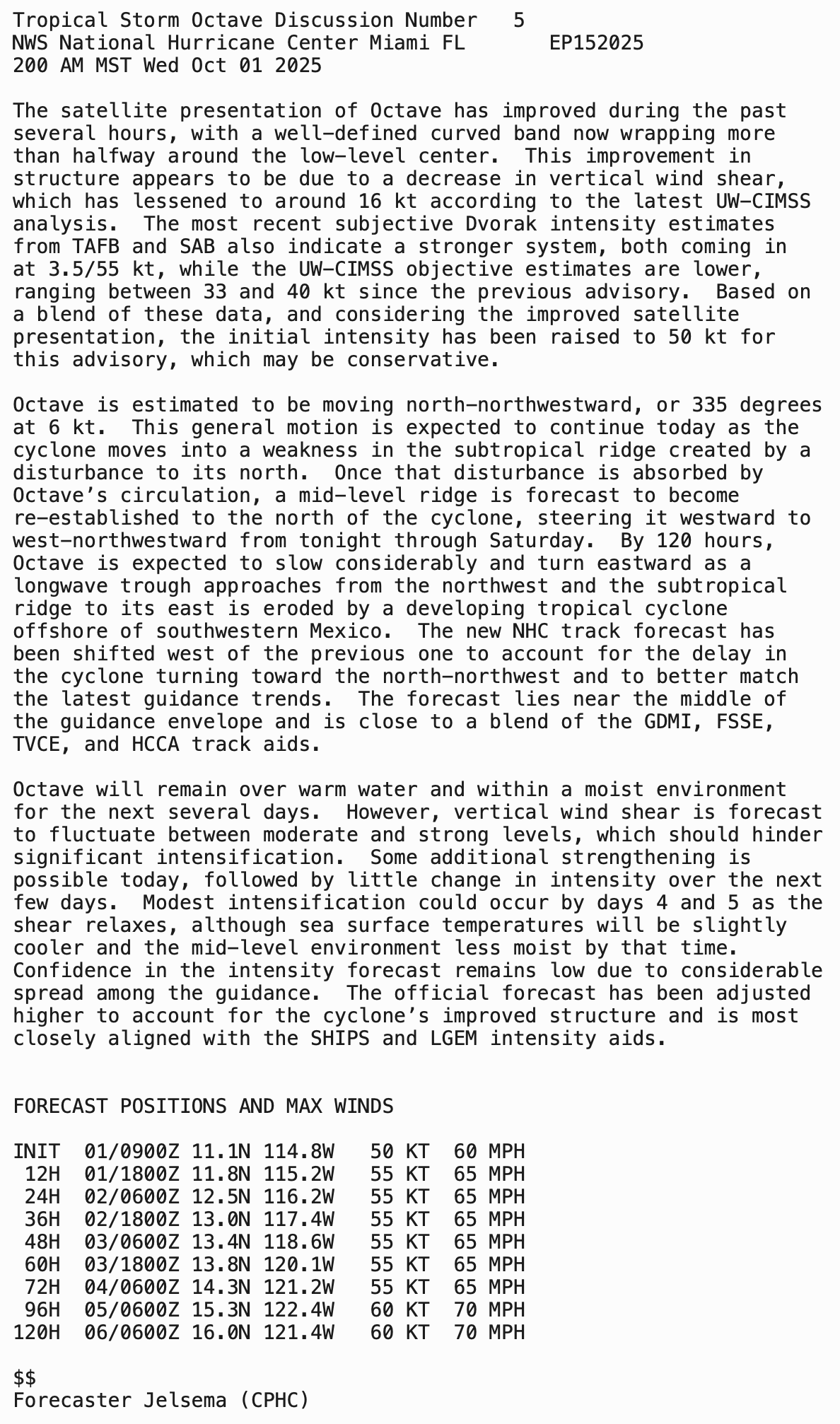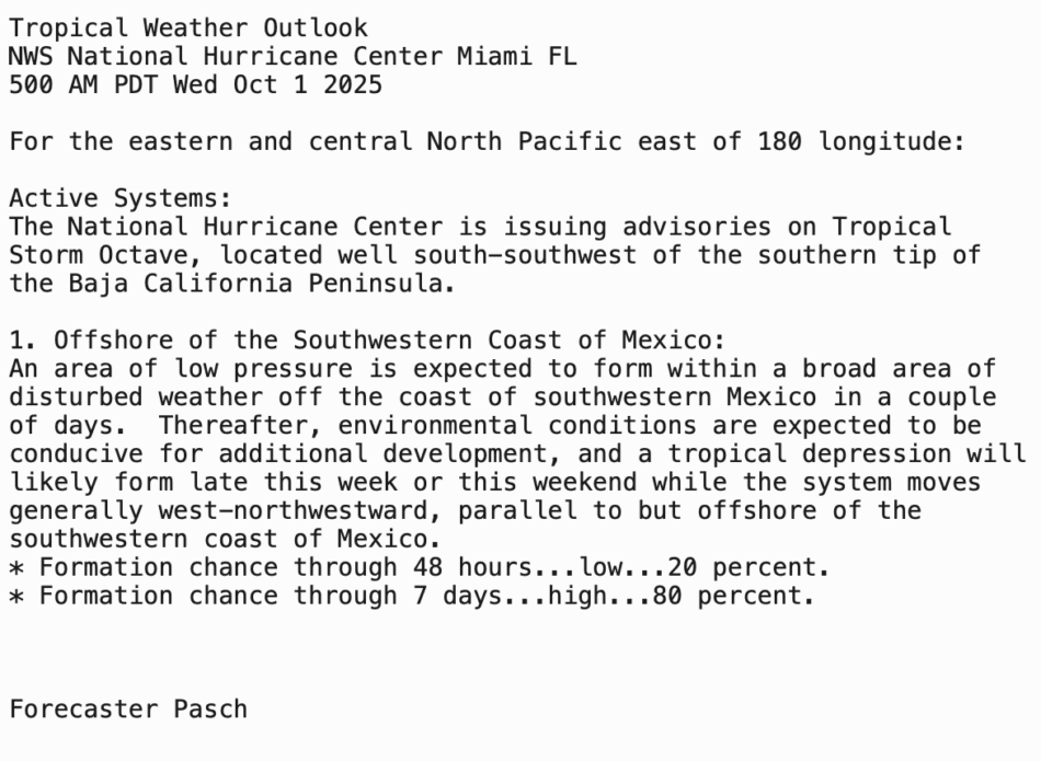 | Tropical Weather Outlook 500 AM PDT Wed 1 Nov 2025 1005 UTCWed 1 Nov 2025 | |