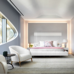 Chin also chose minimalist, yet modern, furniture and accessories. The unit has two bedrooms, with one seen below.