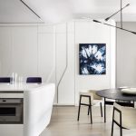 Interior designer Jennifer Post chose white and muted furniture with colorful, contemporary artwork for the model apartment.