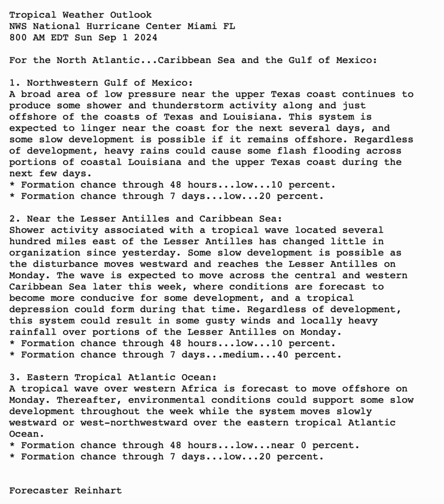 1 Sep Weather in Cayman & Tropical Report, 3 Dist.
