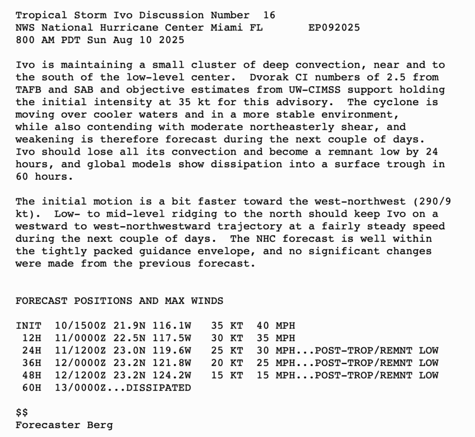 IVO FORECAST TO BECOME A REMNANT LOW BY EARLY MONDAY