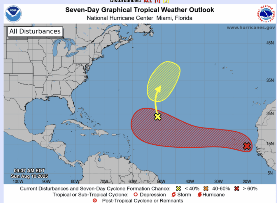 | Tropical Weather Outlook 800 AM EDT Sun 10 Aug 2025 1205 UTC Sun 10 Aug 2025 | |