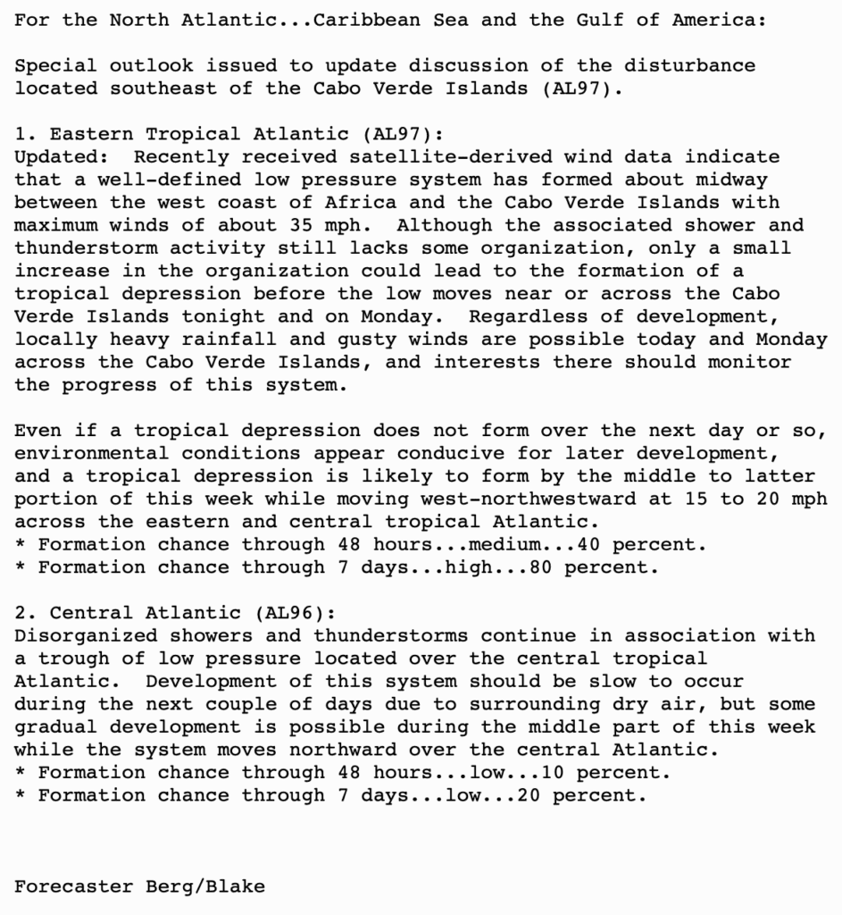 | Tropical Weather Outlook Text | Tropical Weather Discussion |