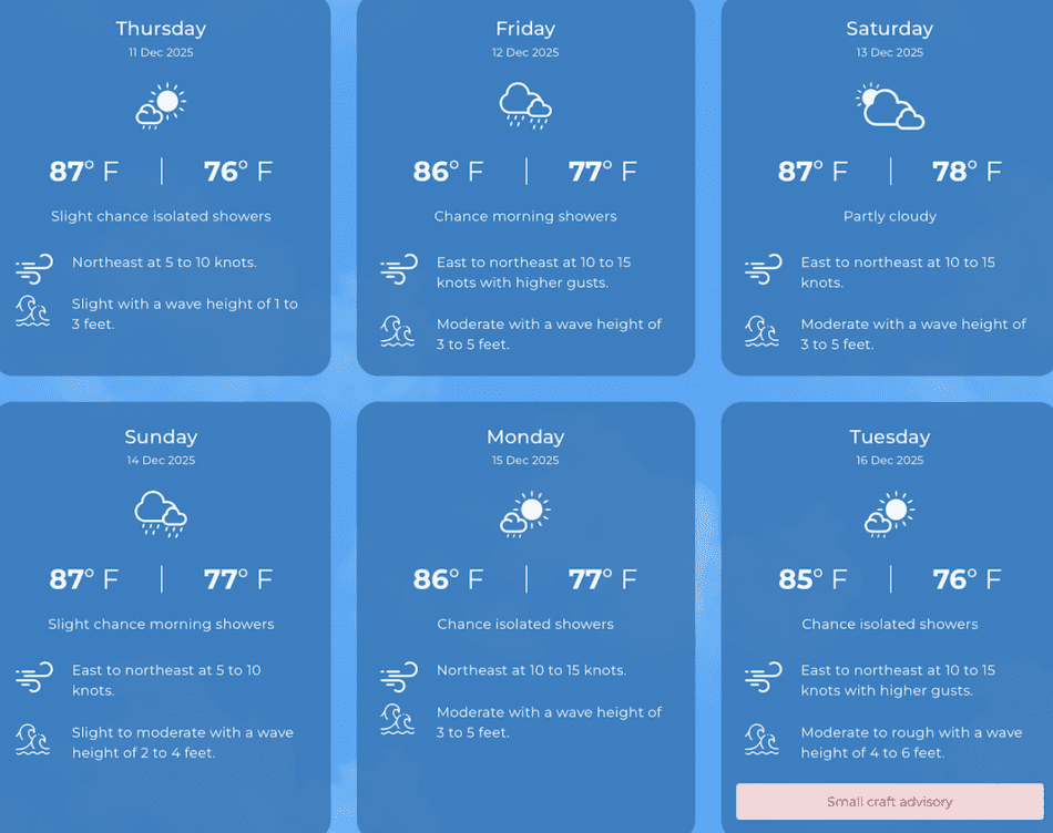 Sea: Smooth with a wave height of fewer than 2 feet.