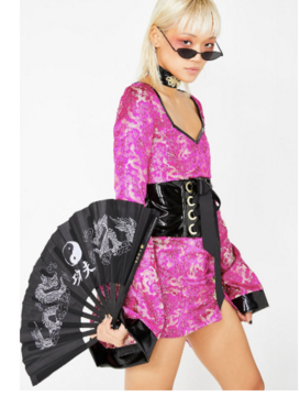 This “Eternal Flower Warrior” has it all: a mini dress with “kimono sleeves,” chopsticks, and a fan to “keep the haters away.” Who let this happen? Who thought this would be a good idea to sell? It’s 2018 — at this point, you probably live under a rock if you think wearing this in public is OK.
