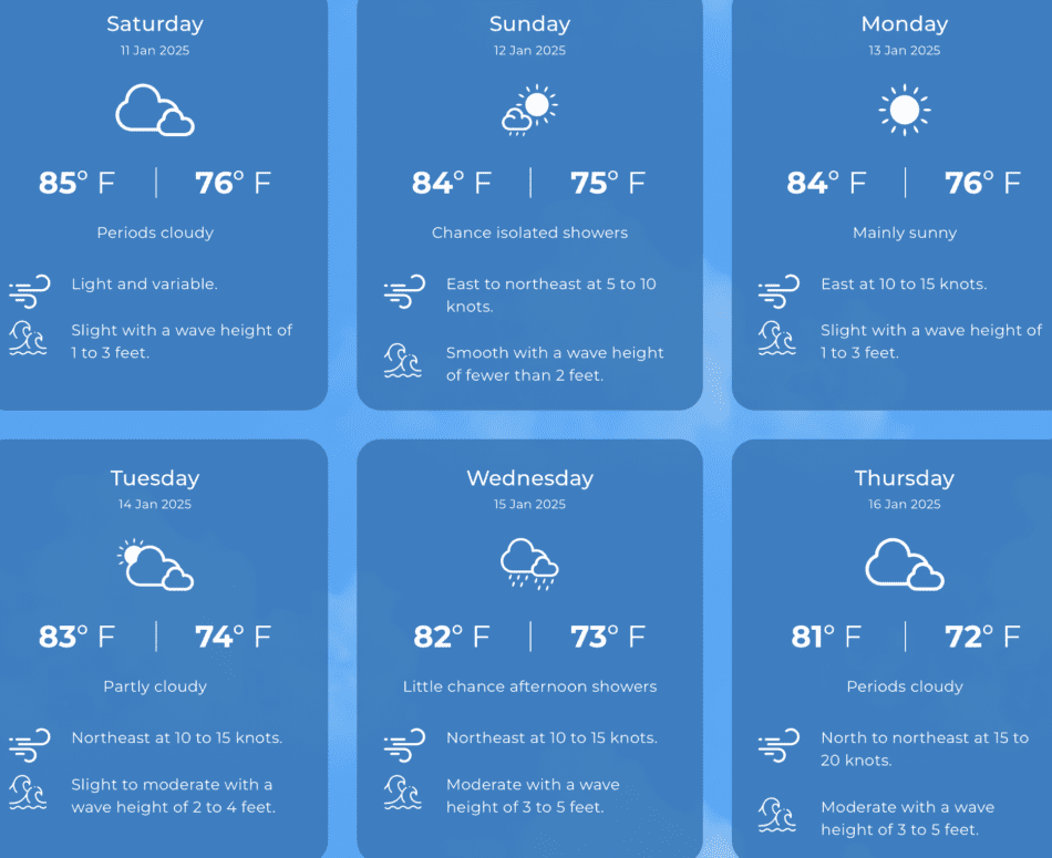 Sea: Slight to moderate with a wave height of 2 to 4 feet.