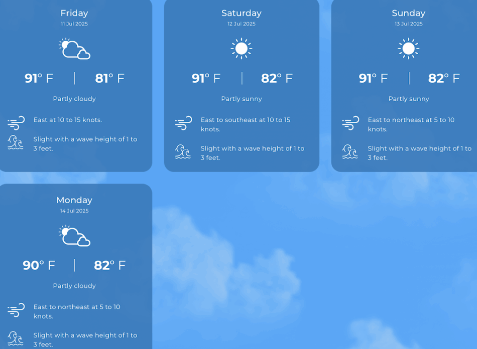 Expected temperatures: 80°F to 90°F. Yesterday: H 90.5°F L79.8°F