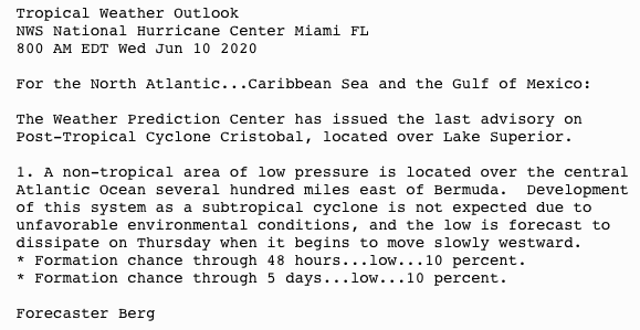 | Tropical Weather Outlook (en Español*) 800 AM EDT Wed Jun 10 2020 |