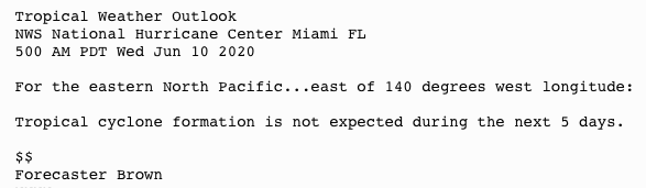 | Tropical Weather Outlook 500 AM PDT Wed Jun 10 2020 |
