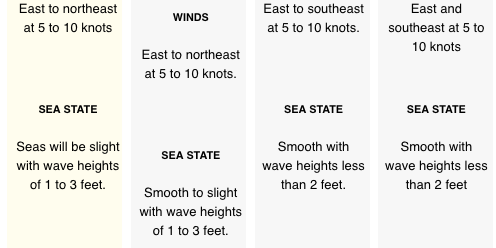 Winds: Today: ENE 10-15 mph Tonight: ENE 5-10 mph